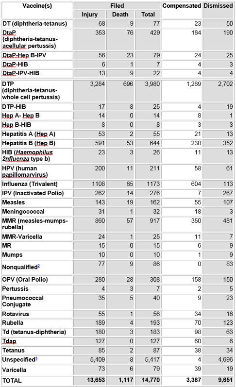 Back on October 18, 2013, I published “The Cost of Vaccine Damage: The Payout Figures” wherein I reported the following figures from the HRSA division of the HHS/CDC/FDA that were reported at http://www.hrsa.gov/vaccinecompensation/statisticsreports.html.